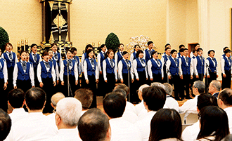 「光榮之年」出發之際,這次全國區長會同時舉辦「幹部出發式」,會議一開始,「太平洋合唱團」氣勢如虹地演唱〈瀑布之歌〉、〈晨曦之歌〉、〈華陽之誓〉、〈我們的先生〉及以池田先生長篇詩譜曲的〈青年啊!來登21世紀廣布之山〉等,帶領與會者堂堂出發。