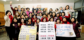 位於鶯歌老街的鶯歌支部(桃園北區)29日舉辦婦人部出發式,鳳祥地區婦人部長曾盈芸分享信心體驗及擴大心得,她懷抱絕對不輸之心超越家中經濟挑戰,同時深入地區第一線播撒妙法幸福種子,帶動地區蓬勃發展。她說:「決意今年要提供活動聚點,鼓勵每位會員都能創造勝利實證,成為最幸福的地區。」