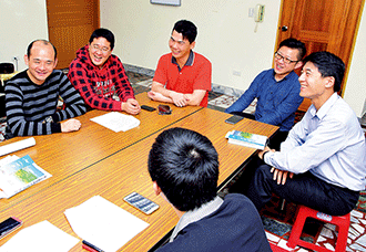 男子部在支部出發式中,針對人才培育、對話擴大進行分享及討論,誓願要成為守護創價的青年先鋒。