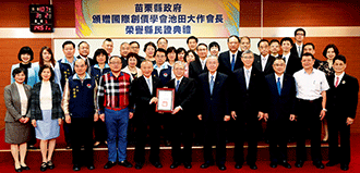 苗栗縣政府頒發「榮譽縣民證」給池田SGI會長