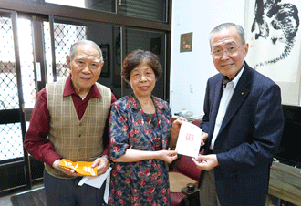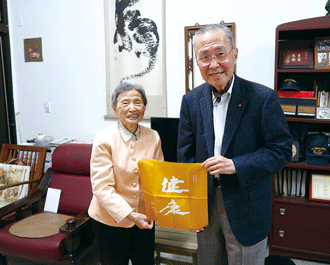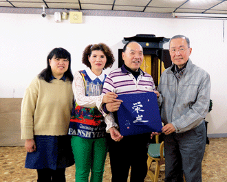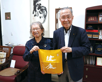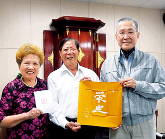 當天,黃進福暢談昔日建設的點滴,林理事長衷心感謝他及用心守護聚會所的會員們,並特別致贈榮光袱紗巾、押印和紙給黃進福伉儷,以表達對他們夫婦一生投身於廣布的誠摯謝意!