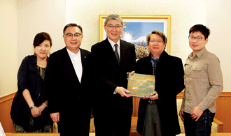 「創價從2003年起,開始推動『文化尋根 建構台灣美術百年史』,我就一直關注著,在藝術上做出實質貢獻,沒有間斷,這很不簡單。尤其訓練導覽員,可以說,創價是志工的學習典範。」這是臺南市美術館館長潘襎(右2) 4月9日下午,蒞臨至善文化會館訪問時對創價的肯定之聲。