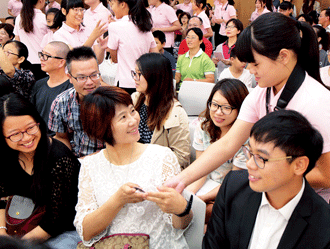 當天,鼓笛隊員以不同樂器分組的方式進行演奏,分別是木管組〈Mexican Hat Dance〉、銅管組〈Don’t feed the plant〉,打擊組〈Little Shop of Horrorsittle〉,接著合奏〈SGI頌〉。最後,全體新生合唱〈母親〉,更送上親手製作的卡片給在場婦人部,以感謝每一位偉大的創價母親,氣氛溫馨。
