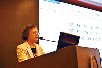 教師部李金枝老師以「教育是為了孩子的幸福」為主題進行報告