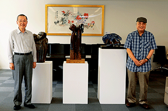 台灣畫壇具「超現實主義」風格的代表畫家陳景容教授、享譽國際的陶雕藝術家李茂宗教授對創價致力推進文化教育活動的用心極為肯定,6月12日先後蒞臨至善文化會館,將其創作致贈給創價典藏,林釗理事長代表接受。