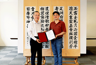 南台書宗陳丁奇的長孫陳昭更 贈送書藝作品給創價典藏