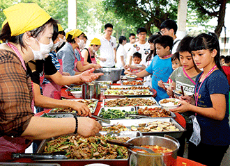 桃園西區則動員近230位壯婦部投入愛心後援會,用心準備美味餐點,讓孩子們吃得津津有味。雖然7月7日下午下了一場大雨,大家仍異體同心地佈置晚會場地,讓活動得以順利成功舉辦, 全力培育後繼的心,讓人感動!