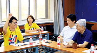 顧明遠教授被譽為「中國比較教育研究之父」,並曾與池田SGI會長出版對談集《和平之橋—暢談人本教育》。2013年起,顧教授每年都會與前往參加「北京大學暑期學校」的創價青年舉行座談會,不僅親切地回答大家的提問,更在教育、人生等方面,給予寶貴建議。