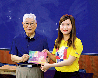 今年高齡90歲、曾與池田SGI會長共同出版《和平之橋—暢談人本教育》對談集的顧明遠教授,6日上午,精神飽滿地與創價青年懇談,針對網路時代的數位學習、教育、人生、和平等議題給予青年許多珍貴建議。