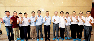8月14日,林釗理事長專程前往屏東文化會館視察。當天,負責會館設計工作的大矩聯合建築師事務所白榮宗建築師(右5),及承包營建工程的聯鋼營造公司工程處處長李海銘(左7)、工務所所長謝冠群(左6)等人都到場。