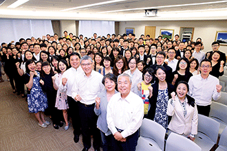 磯貝老師(第一排右1)、執行長林廷鋒(第一排右3)與創價青年團隊部合影