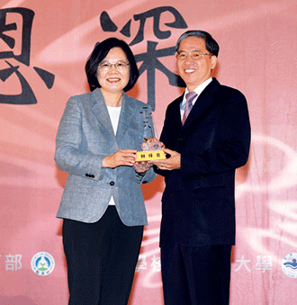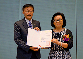 學術部成員、政治大學會計系講座教授的吳安妮(右)教授,9月27日獲該校校長周行一(左)頒政治大學「第三屆仲尼傑出教學獎」殊榮。