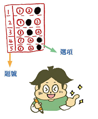2.對應試題的「題號」,請在答案卡相同「題號」的「選項」欄位劃記。請仔細檢查是否一一正確填入。劃記時需清晰均勻、畫滿圓格,不可超出圓圈範圍。