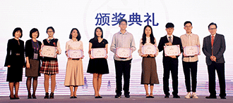 宋慶齡基金會于昕處長(左1)等人頒發獎項給創價青年郭于瑄(左4)、王采寧(左5)、楊書佩(右4)。