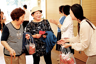 為了感謝多寶會員為廣布所做出的貢獻,工作人員用心安排交通輸送,贈送壽桃、壽麵、麵龜,更為多寶會員拍攝「全家福」,處處洋溢溫馨氣氛。阿公阿嬤們對此紛紛表示:「揪感心!」