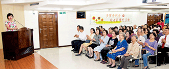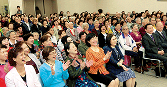 14日,高雄中區70多歲的陳新舞、藍雪凰夫婦發表體驗時談到,懷抱「為了廣布」的單純一念,認真供養、投入第一線鼓勵會員。如今,他們超越經濟苦、女兒病苦等宿命,展現「一家和樂」的勝利實證,精彩的內容獲得聽眾熱烈的掌聲。