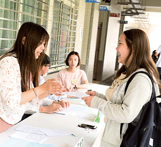 工作人員在報到處為考生服務,讓考生備感安心。(高雄中區/鹽埕國中)