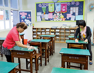 考前一天,工作人員特地前往考場佈置場地、美化環境。(台南南區/安平國中)