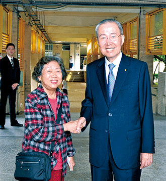 林理事長鼓勵高齡80多歲多寶會員杜月煌(內湖區/三民國中)