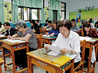 台中北區考生總人數多達264位,許多兄弟、姊妹、父女檔及一家人應考。(四張犁國中)