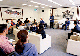 11月4日下午,高雄師範大學教授劉廷揚帶領該校「人力與知識管理研究所」在職進修專班海軍陸戰隊學生10多人,藉由「組織發展與領導研究」課程校外參訪的機會,專程從高雄北上蒞臨至善文化會館訪問,盧怡孝副理事長代表創價給予熱誠接待。