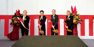 在林釗理事長(右2)、木津建設總監(右1)、楊逸詠建築師(左1)、小俣悌二董事長(左2)共同執鏟動土後,動土儀式圓滿完成。