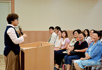10月14日,陳凱莉老師在板橋文化會館分享她於莒光國小等校擔任教職17年的教學心得。她說:「這些年透過與不同類型的學生相處,學習到接納、相信、陪伴、同理心等教學方法。」