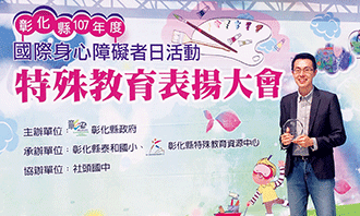 這項表揚,是從創新教學、教學媒體製作、行動研究、教學績效、專業成長等面向進行審核,經過教學現場訪視後,在全縣多名特教教師中遴選出優良教師。