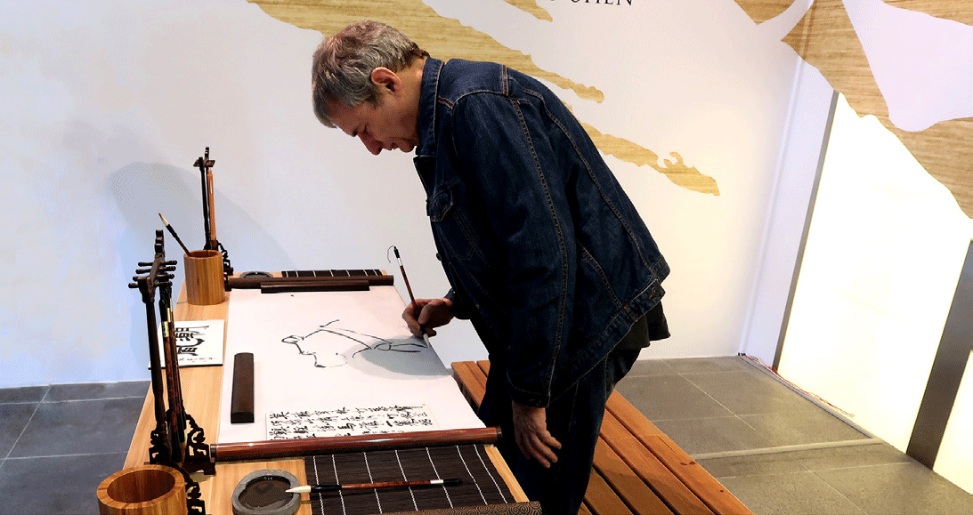 當天,法國動畫改編大師羅傑在至善藝文中心畫下《熊熊冬天遇見小小鼠》中的「熊熊」。