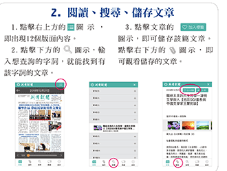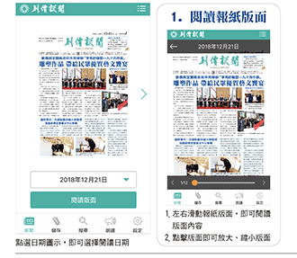 點選首頁左側「觀看報紙」圖示,即可觀看報紙版面。