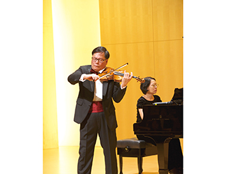 蘇教授自2013年起連續7年受邀到創價舉辦藝文講座。當天,在簡美玲老師的鋼琴伴奏下,蘇教授特地帶來一把奇美文教基金會慨然出借,音色穿透力驚人的義大利18世紀的「史特拉底瓦里」名琴,演出〈降B大調為鋼琴與小提琴所寫的奏鳴曲〉、〈D大調第一號音樂會的波蘭舞曲〉,及《辛德勒的名單》、《屋頂上的提琴手》、《似曾相識》等多部電影主題曲,讓人聽得如癡如醉、欲罷不能,安可聲不斷!