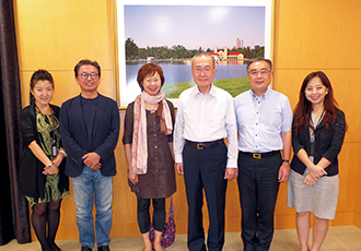 賴瑛瑛教授(左3)專程蒞臨創價訪問,受到林釗理事長熱誠接待。 |