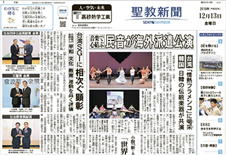 《聖教新聞》12月13日在頭版頭條,大幅報導「民主音樂協會海外公演『熱情佛朗明哥』在台灣獲得熱烈迴響」的好消息。 同日,該報頭版第二則,則以「台灣SGI相繼獲獎」為主題,報導台灣SGI推進文教活動、對社會做出積極貢獻,近期內,接連獲頒「社會團體公益貢獻獎 金獎」、「文馨獎 金獎」、「社會教育貢獻獎」的榮耀。