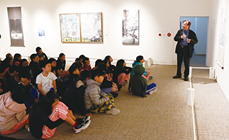 曾在該校任教10年的李振明教授親自為學童們講解其水墨畫創作歷程。學生們對於能夠親自聆聽藝術家的講解,都興奮不已,無不睜大雙眼、認真學習。