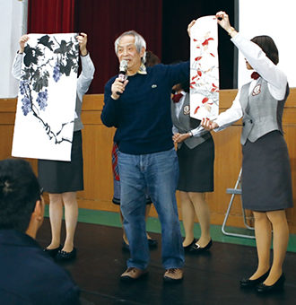 「創價真的很用心!」曾向戴教授習畫的校長周素娥說:「感謝創價安排戴教授到校講解、示範,同學們真有福氣!」周校長並特別頒贈感謝狀給帶領創價的池田SGI會長及戴武光教授,表達感謝。