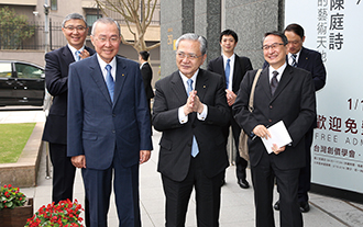 日本創價學會會長原田稔(中)代表池田先生捎來深摯的祝福與期待,稱讚台灣SGI戰勝寒冬,迎來滿溢福德花香的勝利之春。(2018.3.3)