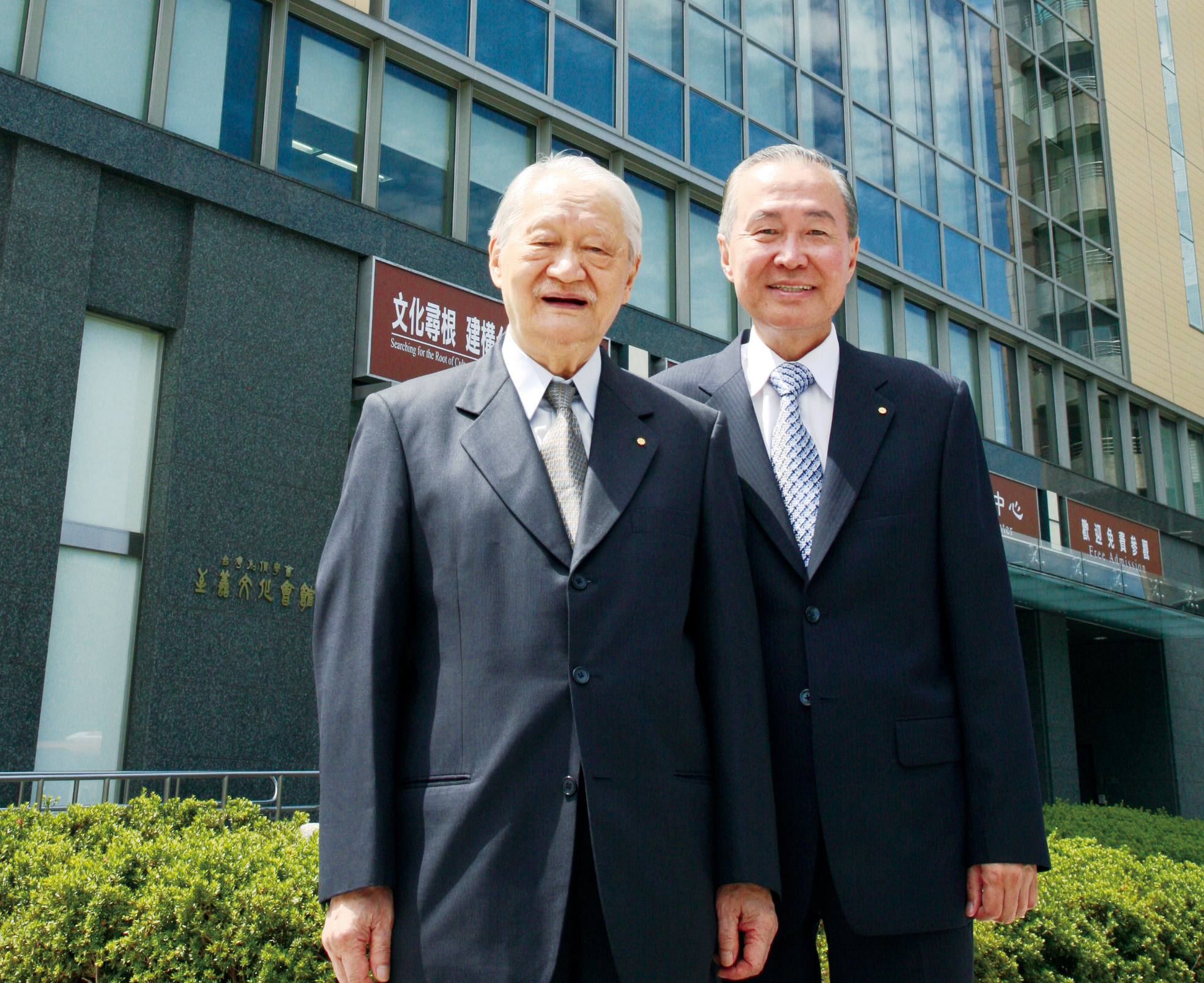 林釗理事長(右)與故朱萬里名譽理事長(左)合影