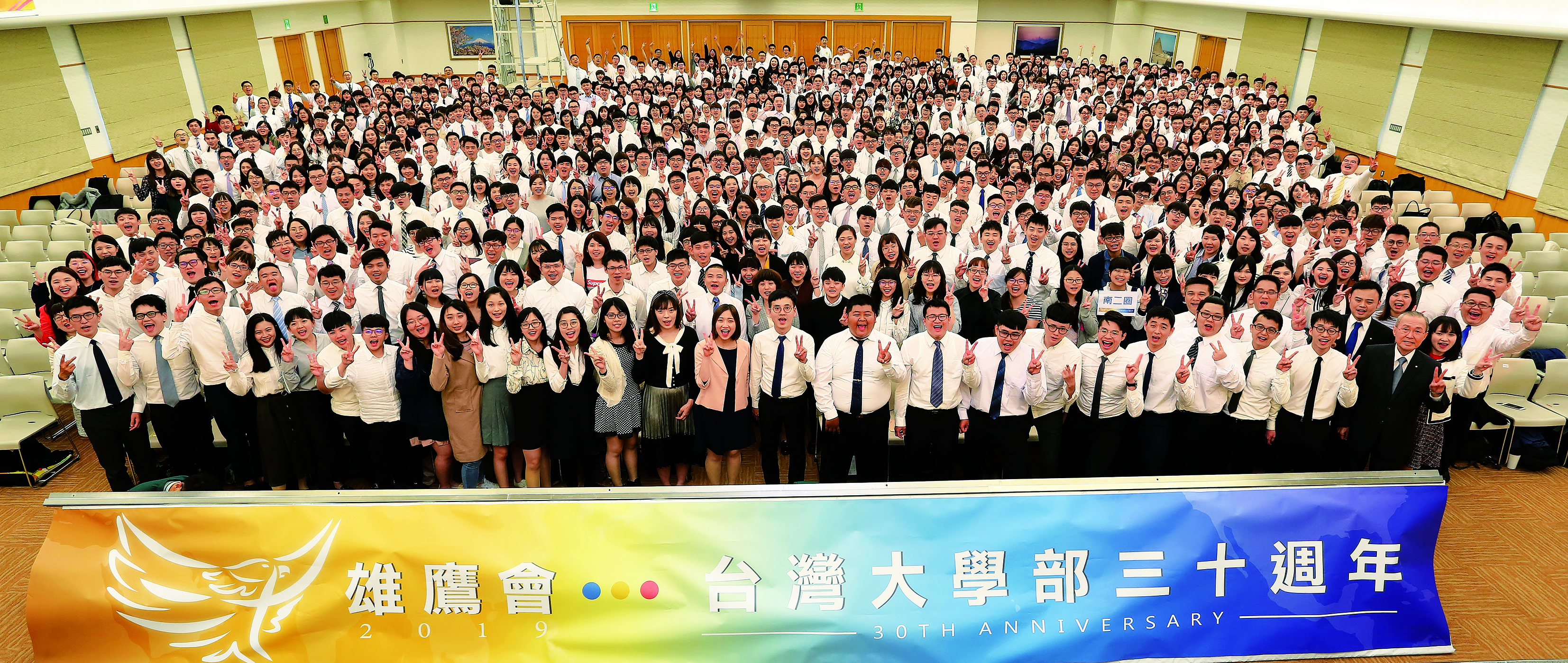 圖:2019年3月,林理事長(前排右2)出席大學部雄鷹會與大學部代表合影。