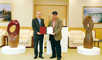 知名陶雕家李茂宗致贈創價作品 感謝創價用心推廣藝術教育 |