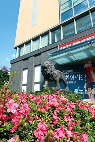 迎來5.3創價學會日,至善文化會館前杜鵑花盛開。