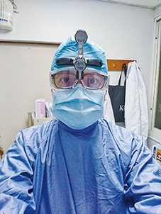 看診過程中,遇有接觸史、咳嗽、肺炎症狀之疑似患者而必須作口腔及鼻腔視診時,因接觸距離近、感染風險高,所以一定要穿著防護衣、配戴口罩、護目鏡、隔離衣及手套等。這些雖然辛苦,而他說:「秉持從醫的初衷,能與民眾一同努力抗疫是很感謝的事。除了持續為家鄉民眾的醫療工作貢獻心力之外,更期許自己要提升專業至全球一流水準,幫助病患脫離痛苦,永保健康。」