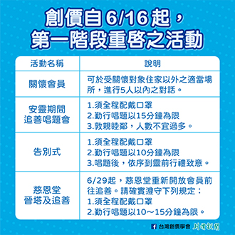 創價公布第一階段活動重啟規劃 |