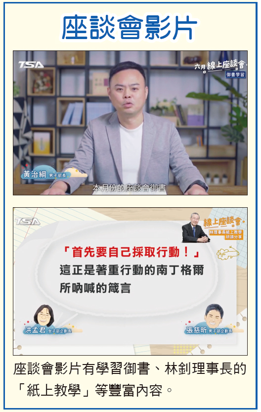 線上座談會氣氛熱絡、笑聲不斷,大家紛紛表示:「台語發音的影片超用心」、「在國外工作,還可以參加線上座談會,非常幸福」、「每個單元都很精彩,感謝學會的用心準備」,大家決意要將滿滿的收穫與感動,化為超越逆境及成長的動力。