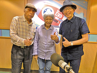 藝術家夫婦蕭仁徵、詹碧琴(左1、2)接受與談人廖新田教授(右)訪問。 |