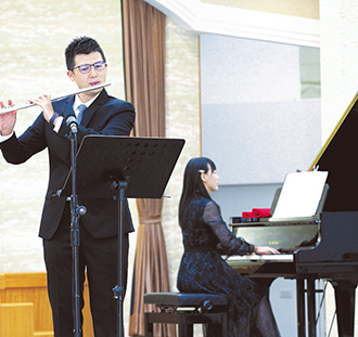 青年音樂家賴柔均、侯迦宇演奏悠揚美妙的樂曲。