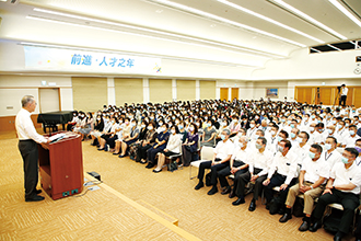 「賦予人產生活下去力量的關鍵就是『人的繫絆』。」他以池田先生這段指導期勉大家,從自身開始、率先展現「大惡起則大善來」的勝利實證。並呼籲大家以地區勝利總會為目標,為友人的幸福真心誠意地祈求、給予鼓勵,在人們心中點燃希望與勇氣的燈火。