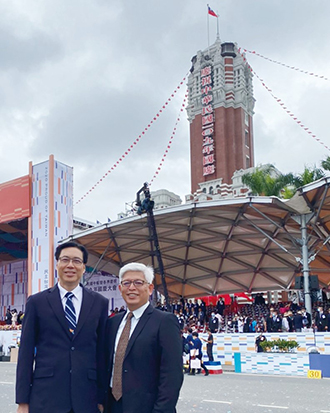 10月10日上午,中華民國國慶大會在總統府前廣場盛大舉行,創價應總統府之邀參加觀禮。 當天,「社團法人台灣國際創價學會」理事長周俊文、「社團法人中華創價佛學會」理事長徐世新及近30位會員代表創價出席這場盛會,為國家慶生。