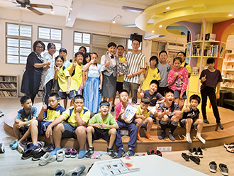 新城國小10月15日舉行的行動美術館,導覽員以有獎徵答方式,引導學生思考自己生活周遭有哪些雕塑作品,互動相當熱絡。五年級的林恩軒說:「一定要請媽媽陪我去美術館看展,並希望有一天我也能做出雕塑品送給媽媽。」