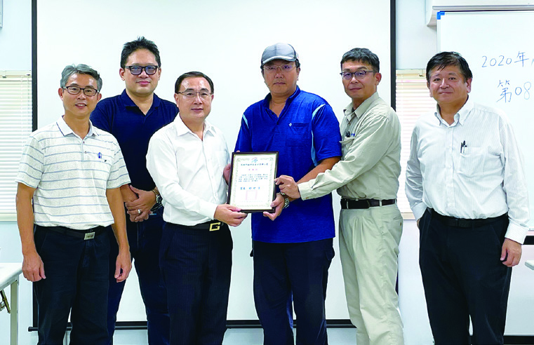 金田里里長邱世宗(右3)頒贈感謝狀給創價,副理事長洪玉柱代表接受。