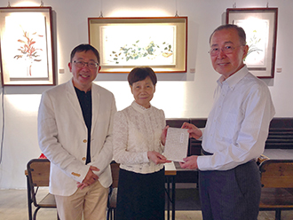 林理事長參觀楊美華畫展,並與楊美華(中)、洪秀宏(左)合影。
